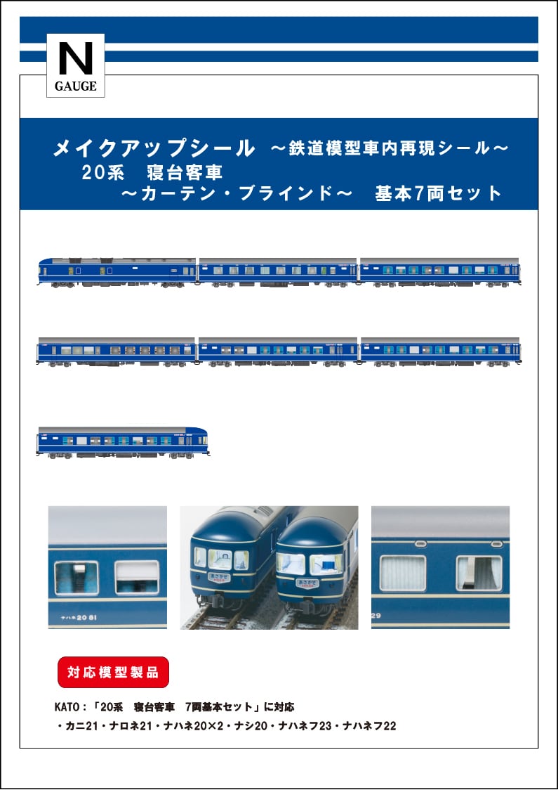 ※特注品 ・対応模型 「KATO」品番:10-1591「20系 寝台客車 7両基本セット」 ・カニ21・ナロネ21・ナハネ20×2・ナシ20・ナハネフ23・ナハネフ22